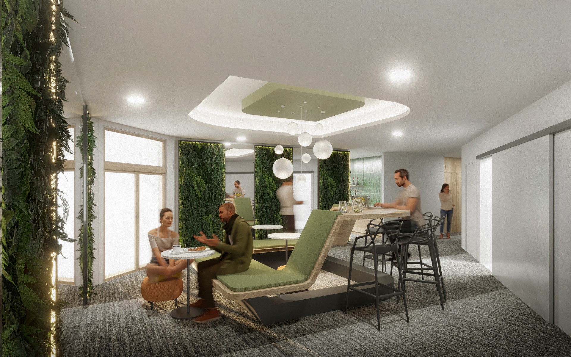 In der Siemens City, im Bau 34, haben wir ein Redesign der Allgemeinflächen und der Besprechungsräume gestaltet. Das Konzept arbeitet mit vielen Holz- und Naturmaterialien, sowie zahlreichen Grünpflanzen. Die dadurch entstehende Wohnlichkeit lädt zum Verweilen in Büro ein – Lounge und Leisureflächen zum Energieauftanken.