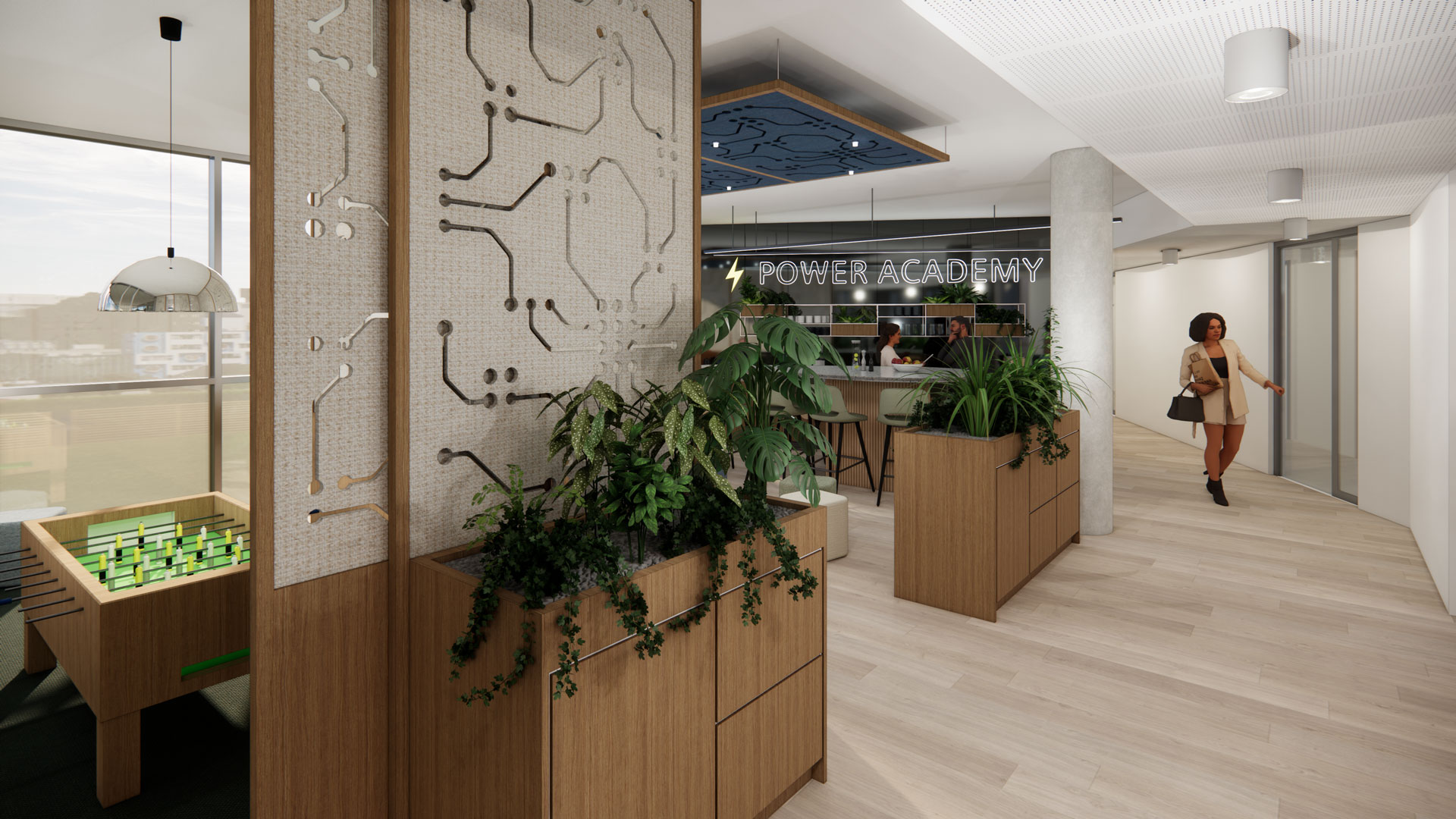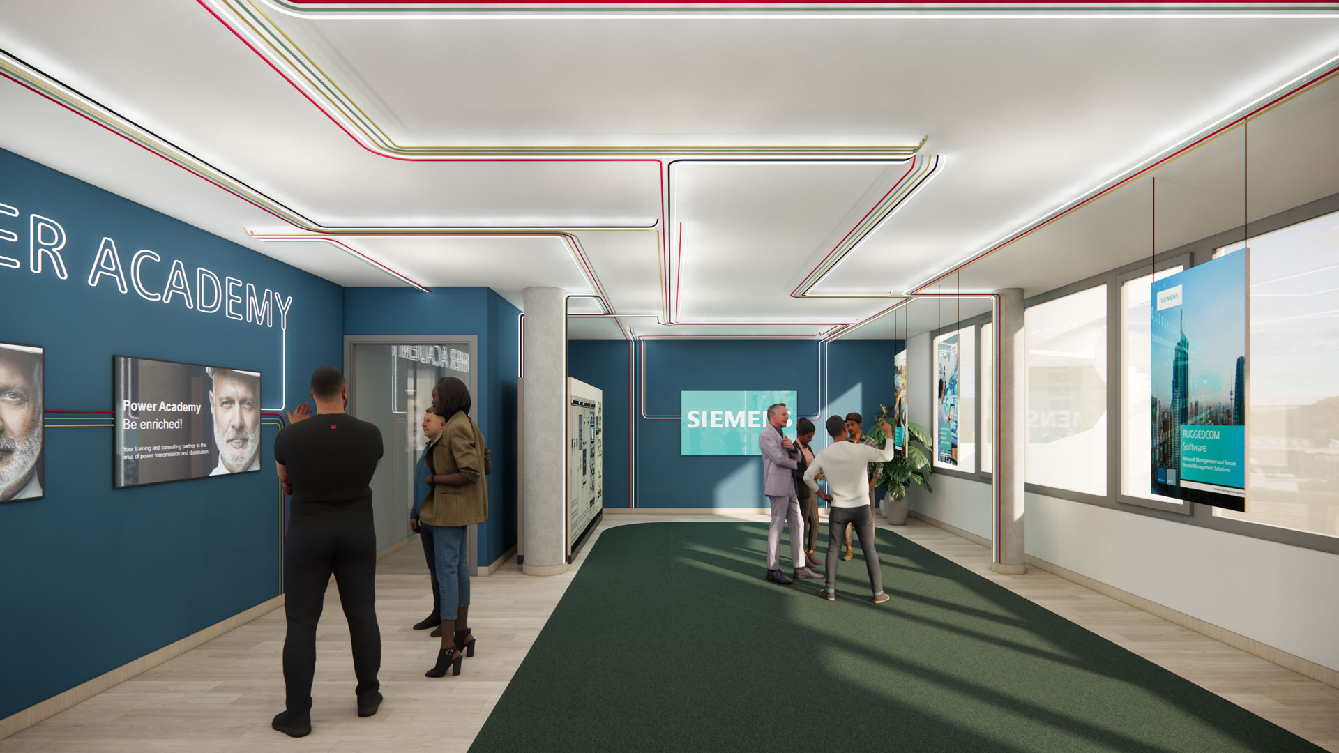 Auf rund 200 Quadratmetern bietet die Siemens Power Academy Raum für Wissenstransfer, Austausch und individuelle Beratung im Bereich Energieübertragung und -verteilung. Damit Lernen und Begegnung in einer ebenso angenehmen wie repräsentativen Atmosphäre stattfinden, gestalten wir derzeit Cafeteria und Schulungsräume der Power Academy in einem modernen, zeitgemäßen Design neu.